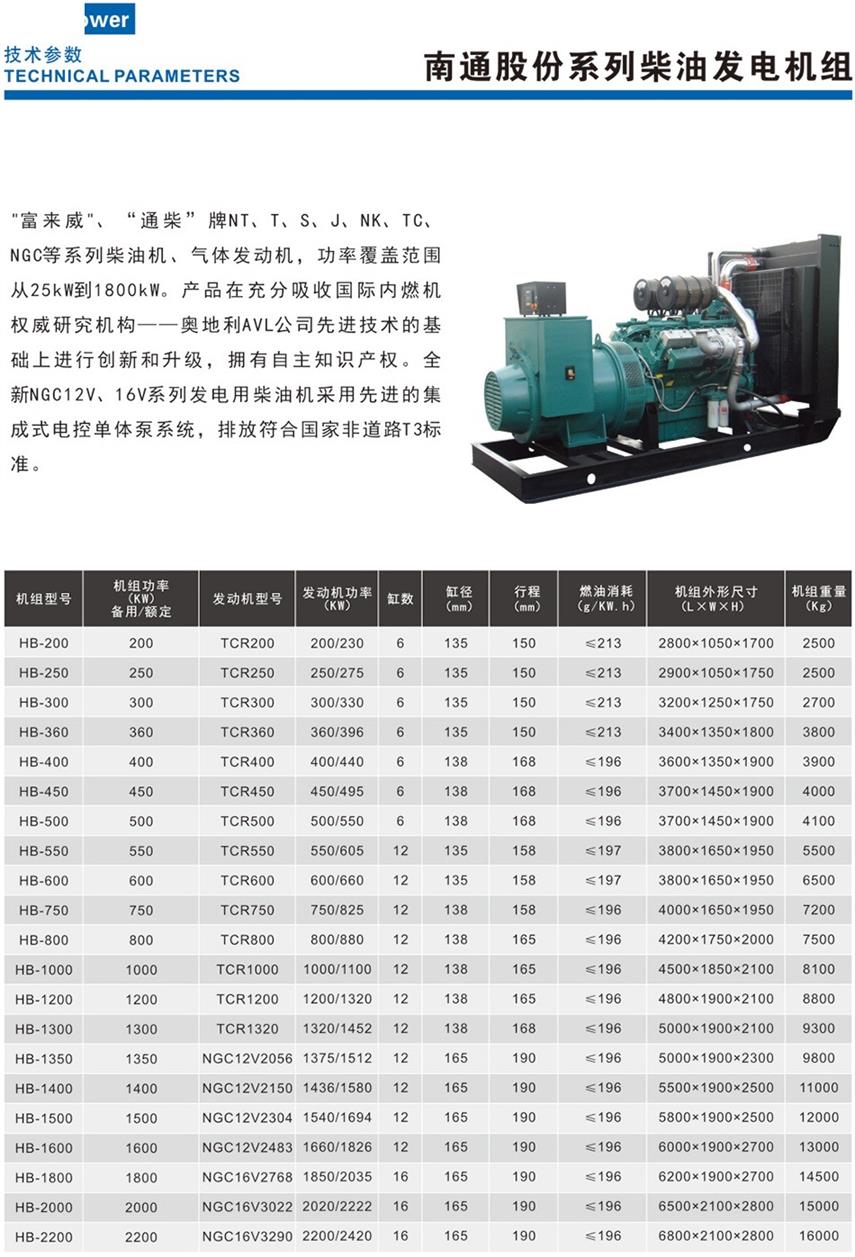簡介—— 四川南通系列發(fā)電機(jī),"飛鯨"、"富來威"、“通柴”牌NT、T、S、J、NK、TC、NGC等系列柴油機(jī)、氣體發(fā)動機(jī),功率覆
